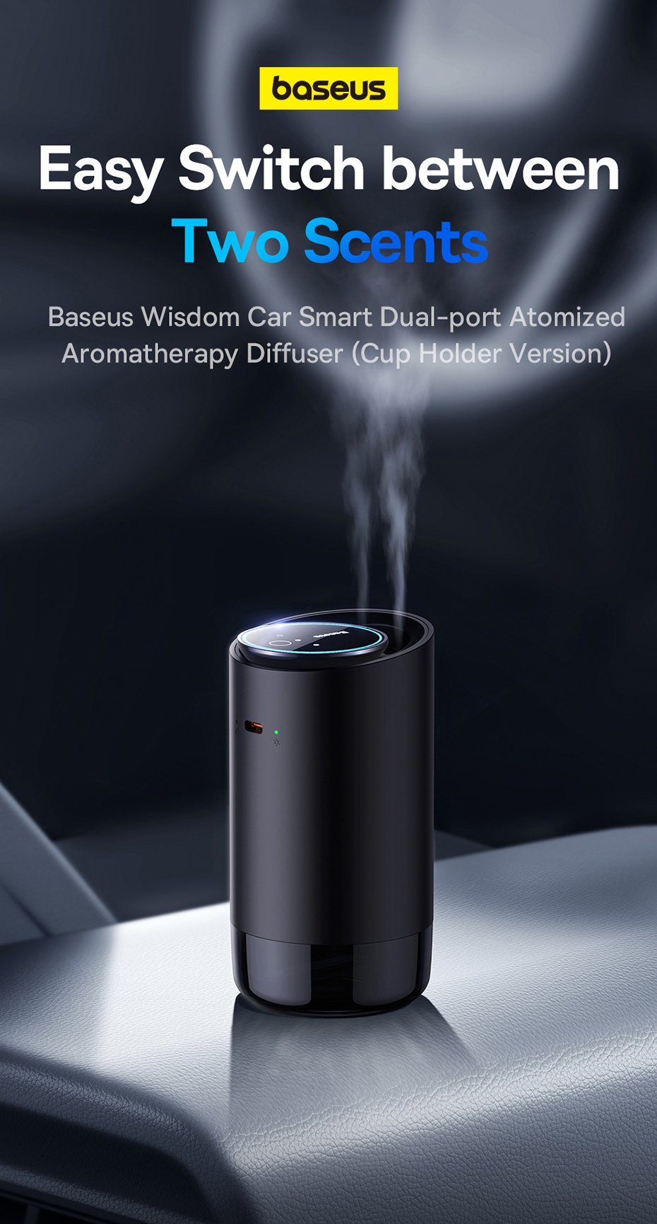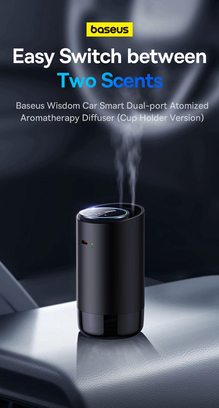 Baseus Wisdom Car Smart Dual-port Atomized Aromatherapy Diffuser (Cup Holder Version)