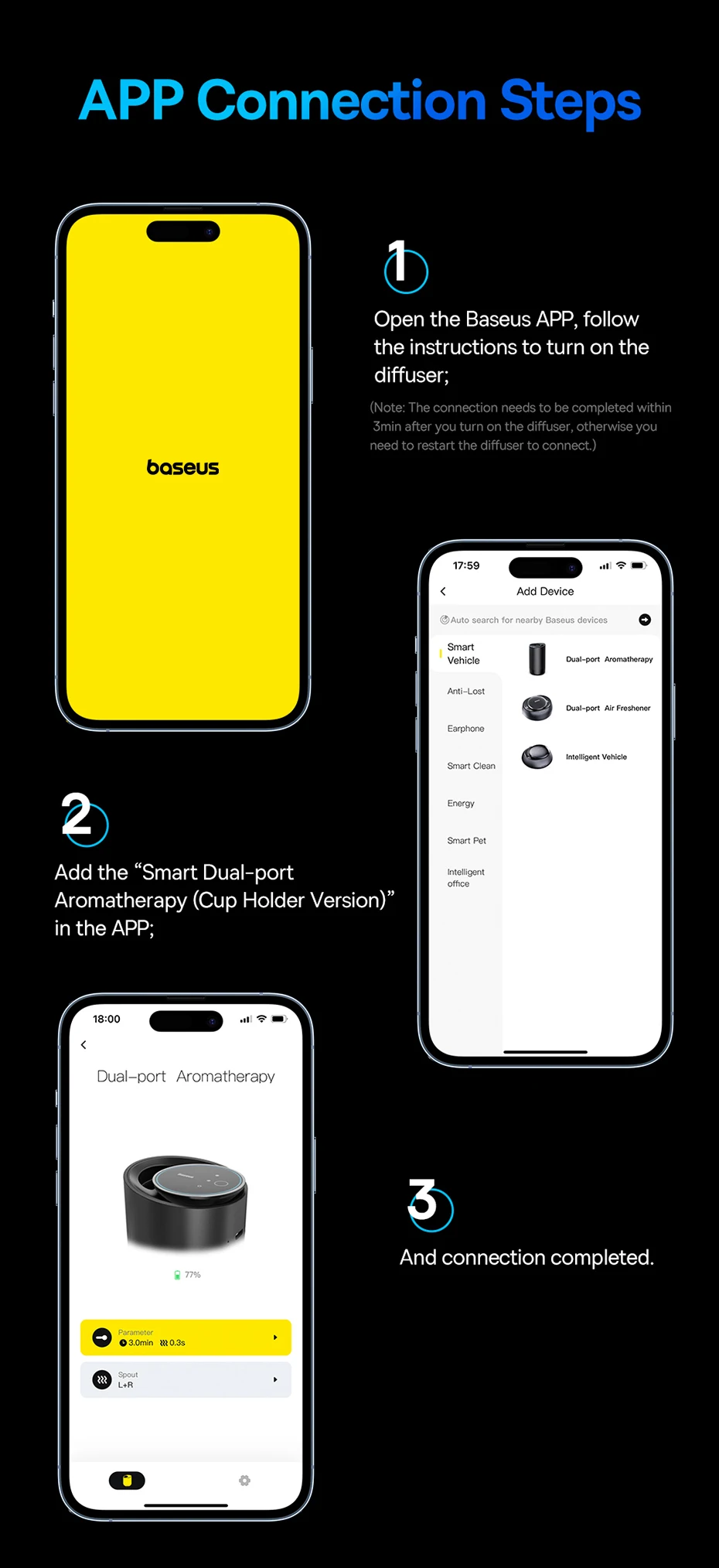 1. Open the Baseus APP, follow the instructions to turn on the diffuser;