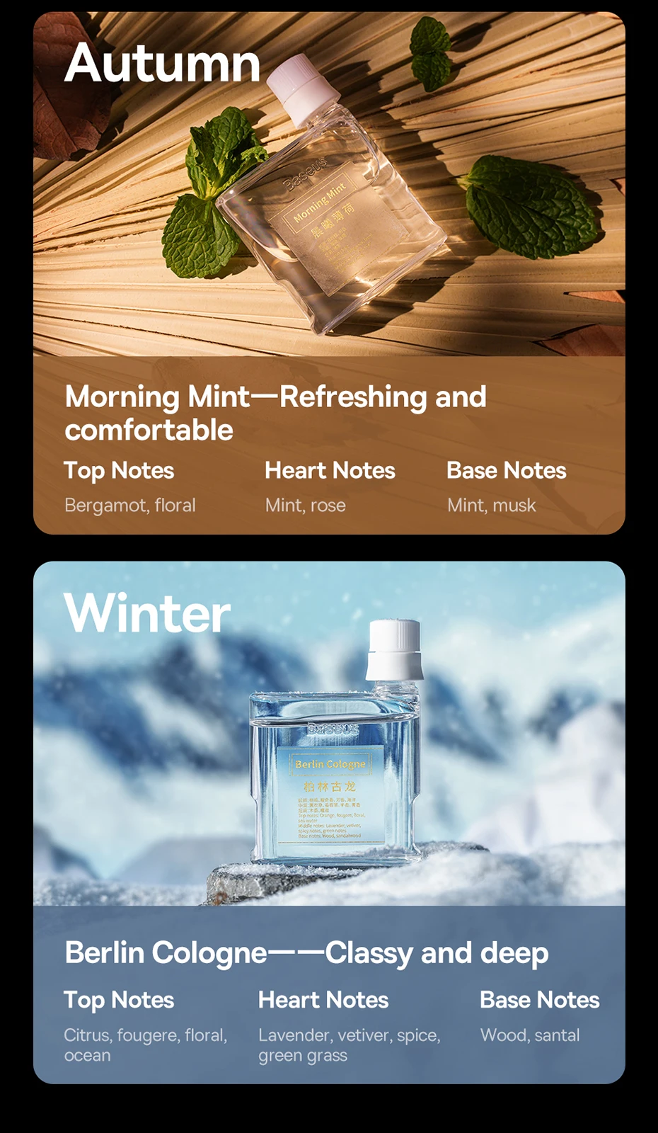 Berlin Cologne+Morning Mint——Citrus and green notes, refreshing and soothing.