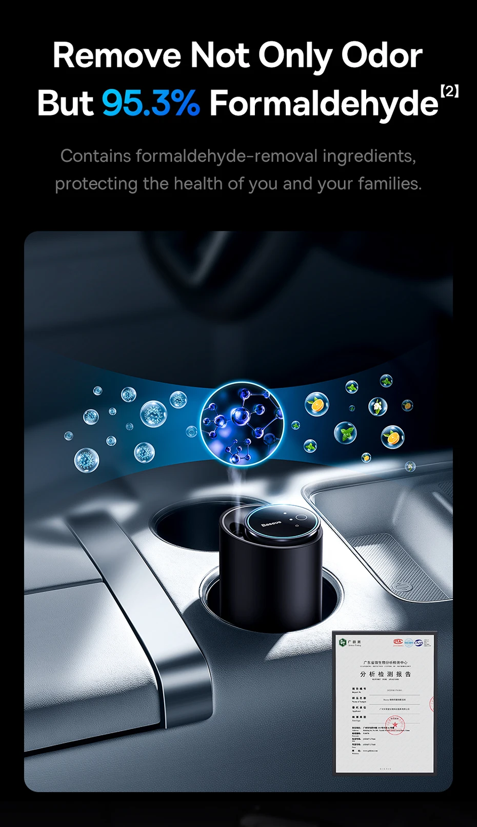 95.3%【2】 Remove Not Only Odor But 95.3% Formaldehyde【2】