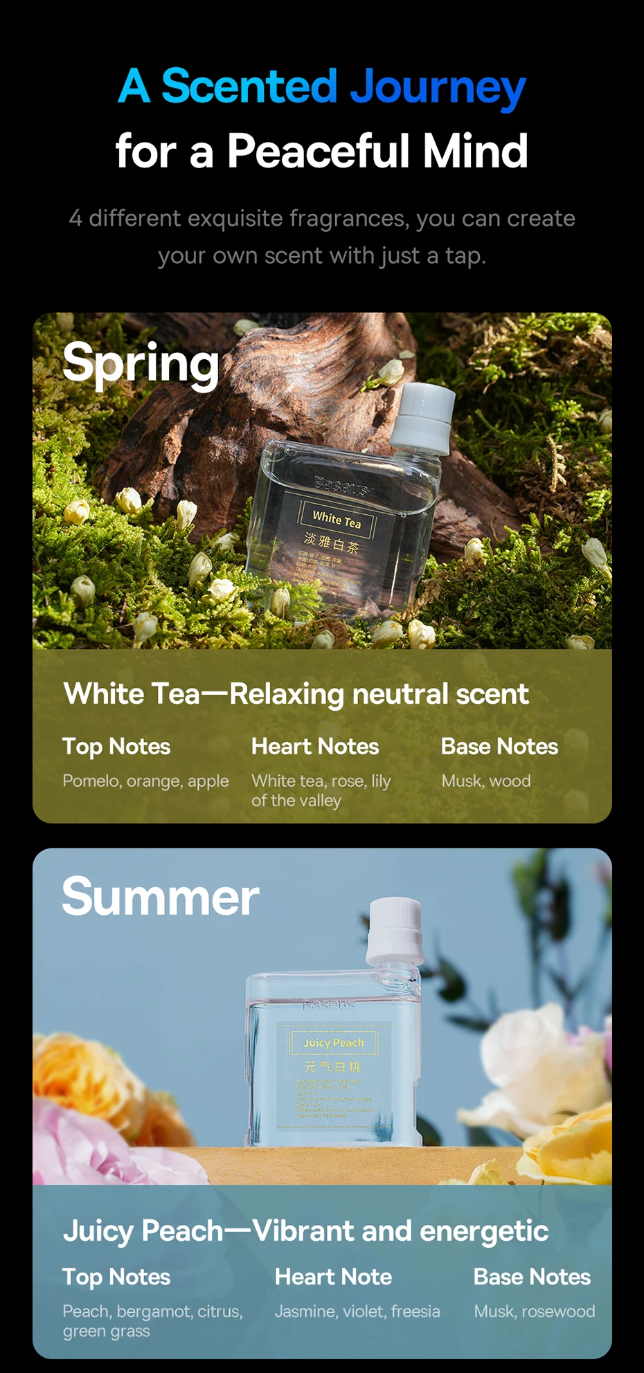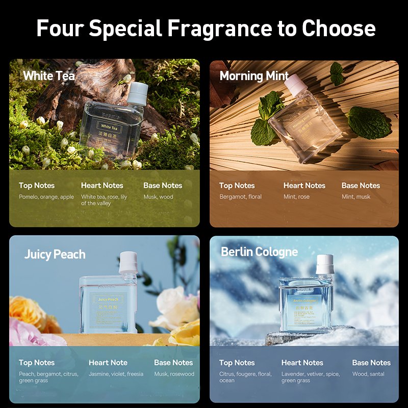 4 different exquisite fragrances, you can create your own scent with just a tap.