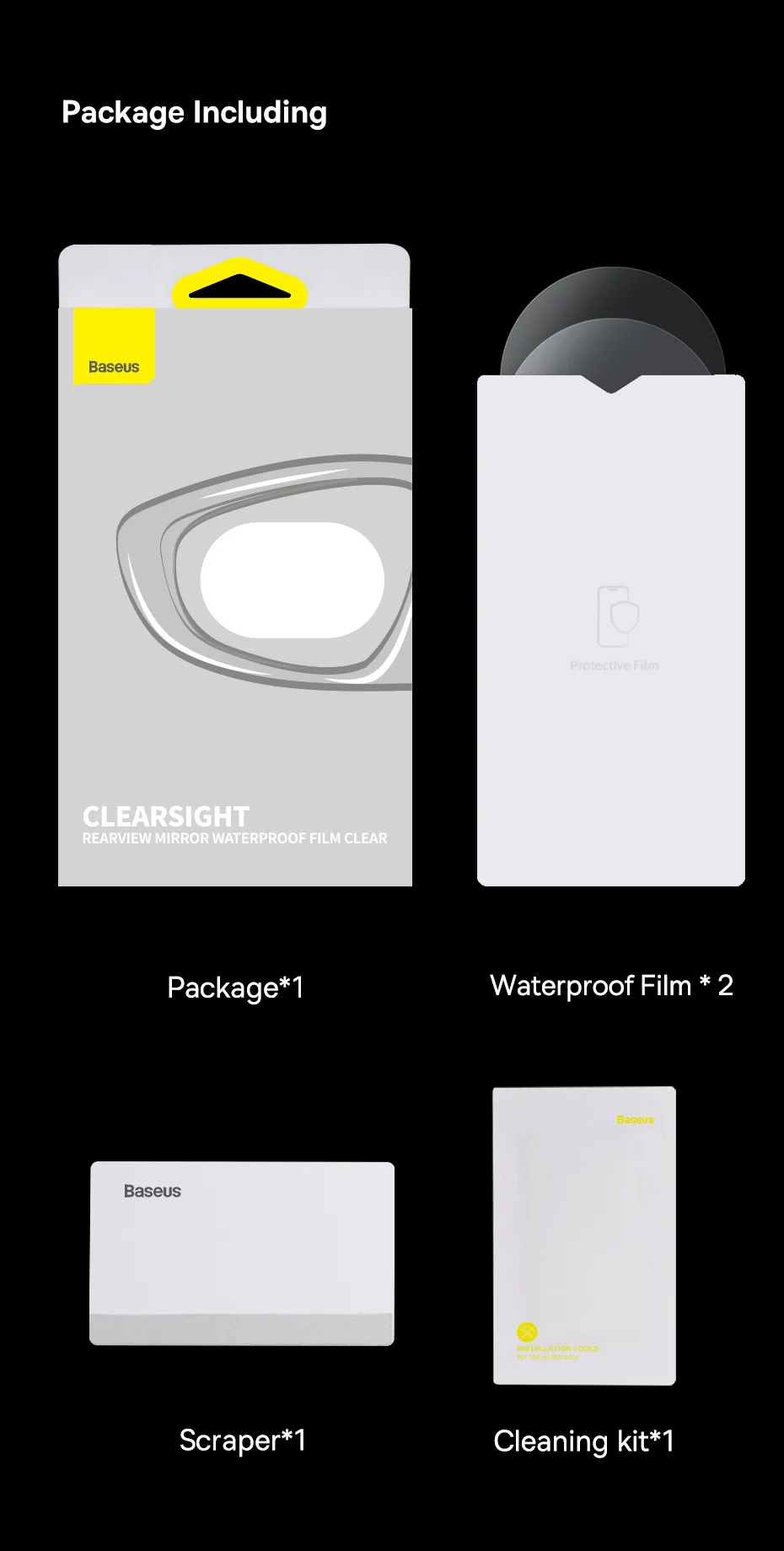 The Baseus ClearSight Rearview Mirror Waterproof Film Clear, Pack of 2, offers a reliable solution to enhance visibility and protect your rearview mirror. With its HD clarity, glare-repelling design, waterproof properties, scratch resistance, and secure installation, it is a practical choice to ensure a safer and more enjoyable driving experience.